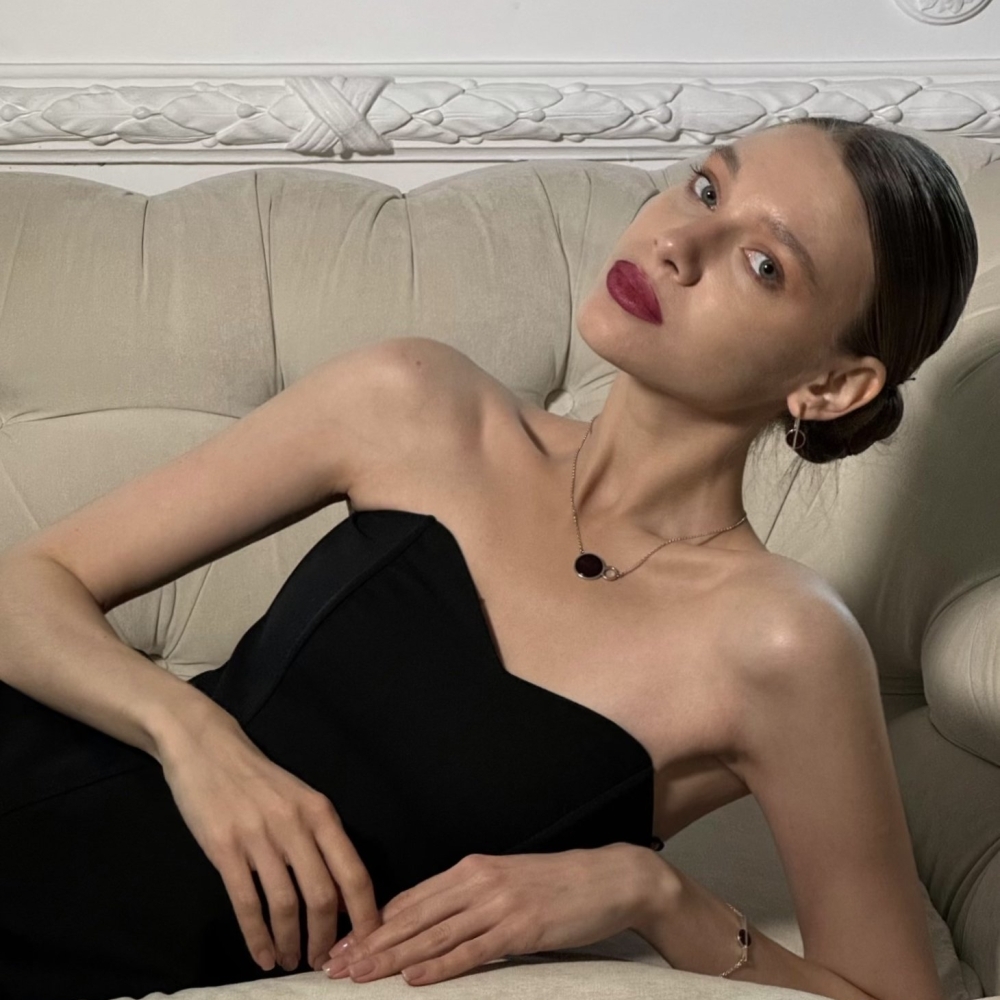 Колье Fork вертикаль с вишневым янтарем