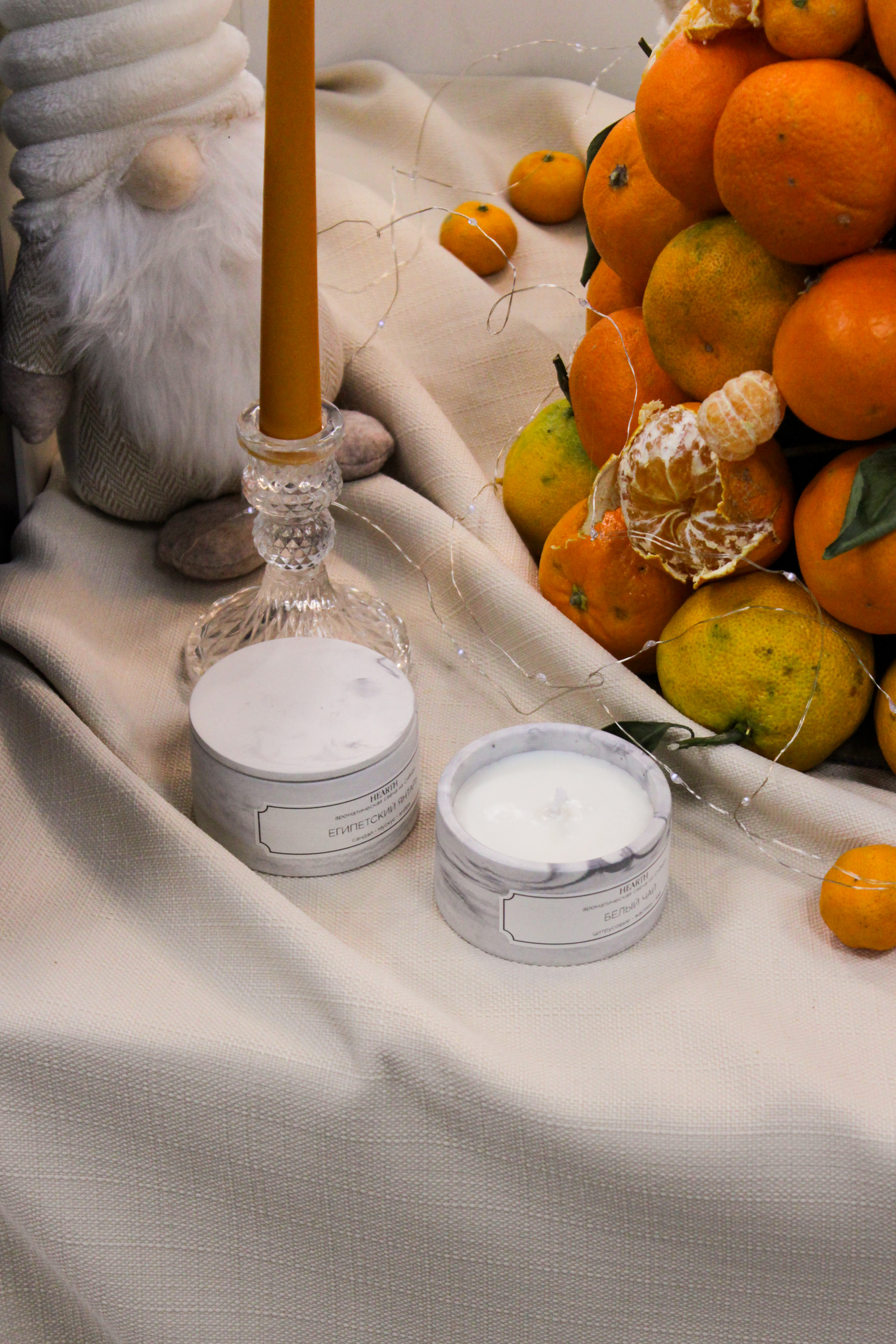 Свечи сделаны из натурального соевого воска и отлиты вручную с использованием ароматических масел и хлопкового фитиля.